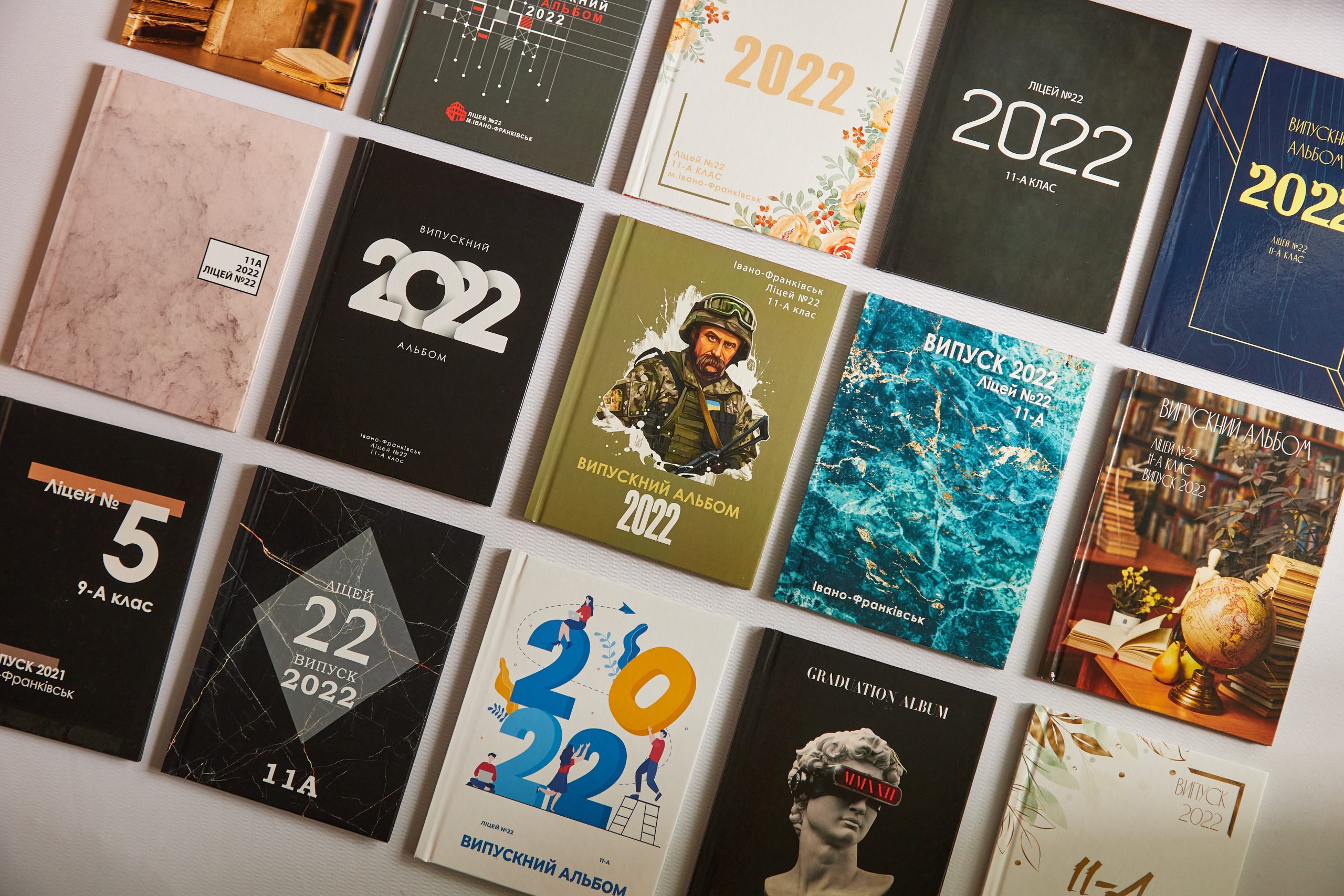 Великий вибір дизайнів випускних альбомів.
