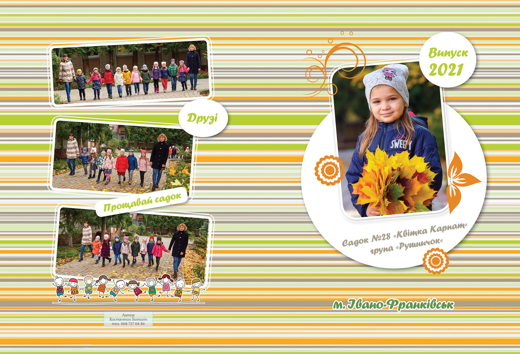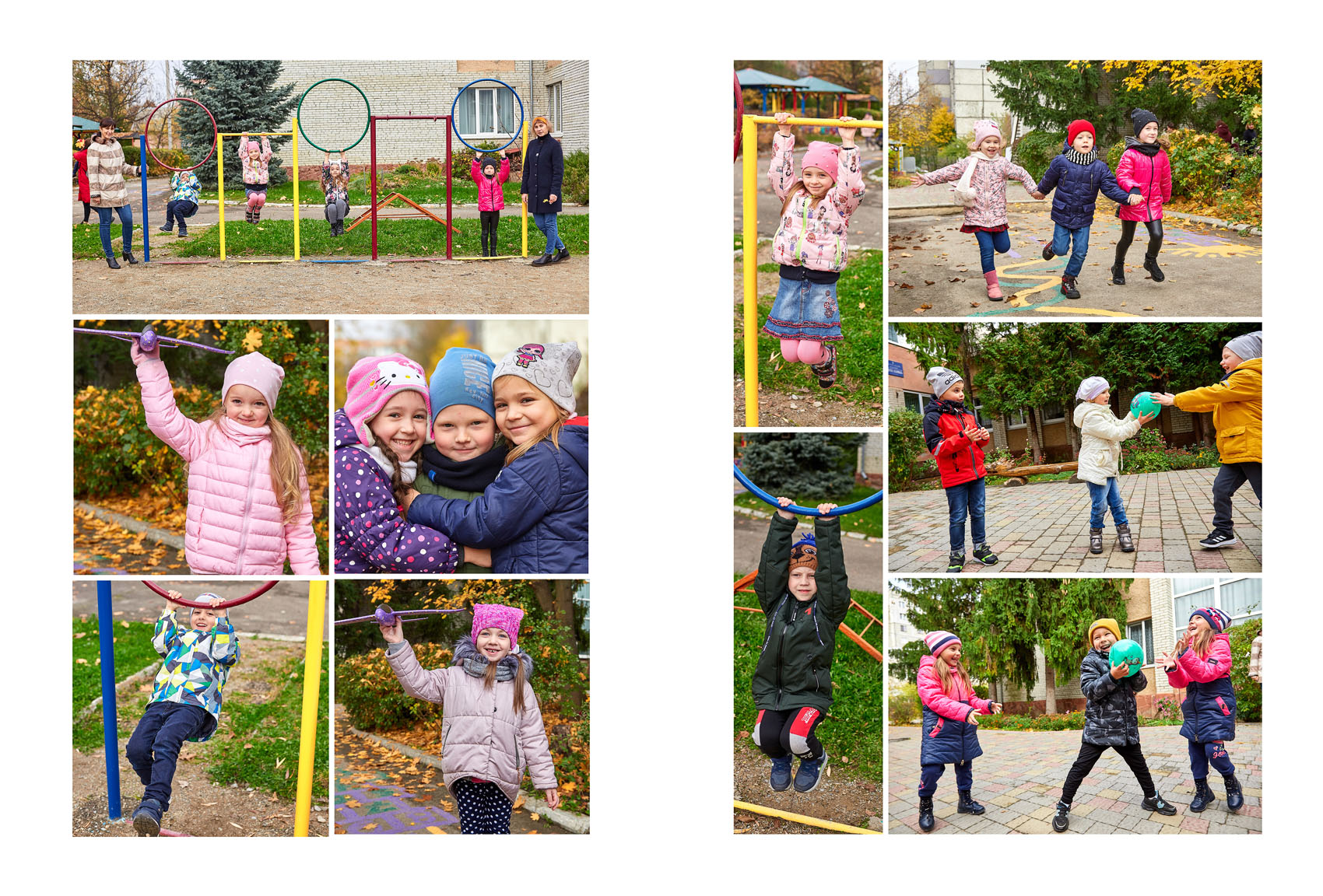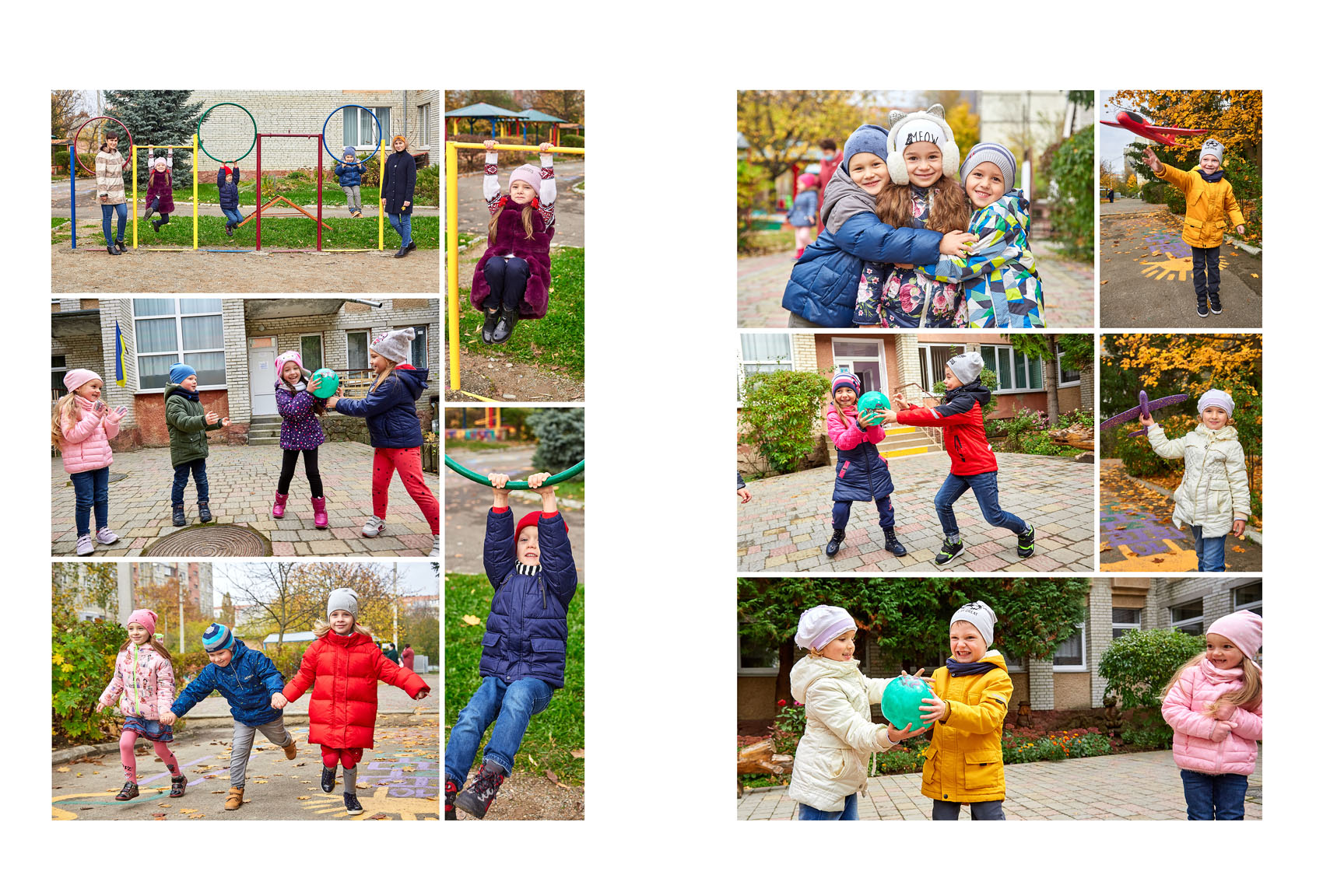 Альбом створюється з фотографій однієї фотосесії, яка проводиться на території садку або в парку.
